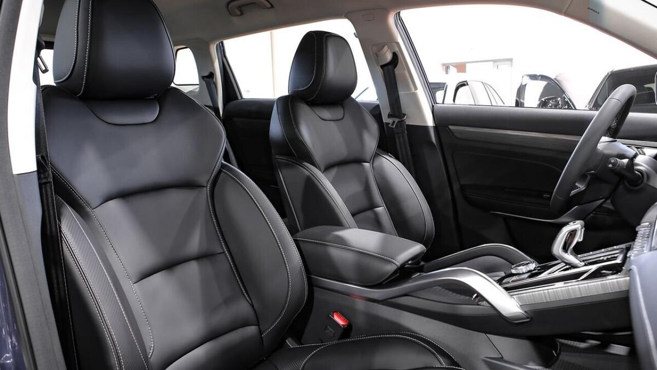 - Сиденья премиум-класса с отделкой экокожей чёрного цвета и вставками под "карбон" на передних сиденьях